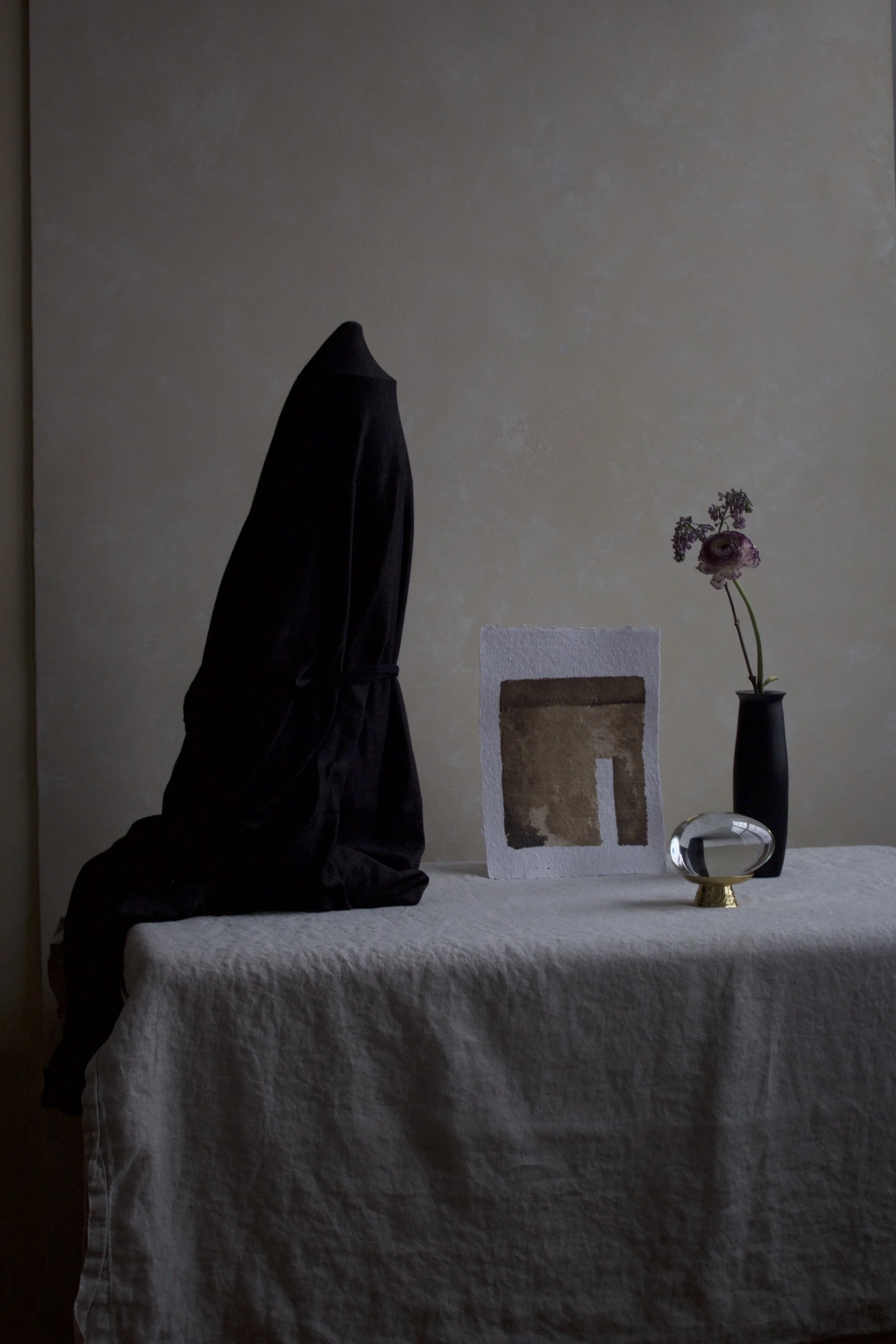 Though I have been seeking to make my art studio a monk like experience for my own selfish use—a place that commands a stillness and a focused artistic contemplation— what I have been fascinated by are... vessels, what I can only think of as “Totems”. I am intrigued by the ritualistic items... that, with enough distancing from the culture that created them, get lost to time. An amphora devoured by nature is rendered useless, and its time stamp elevates it into a work of art. A memento mori accomplishes something of a similar nature.